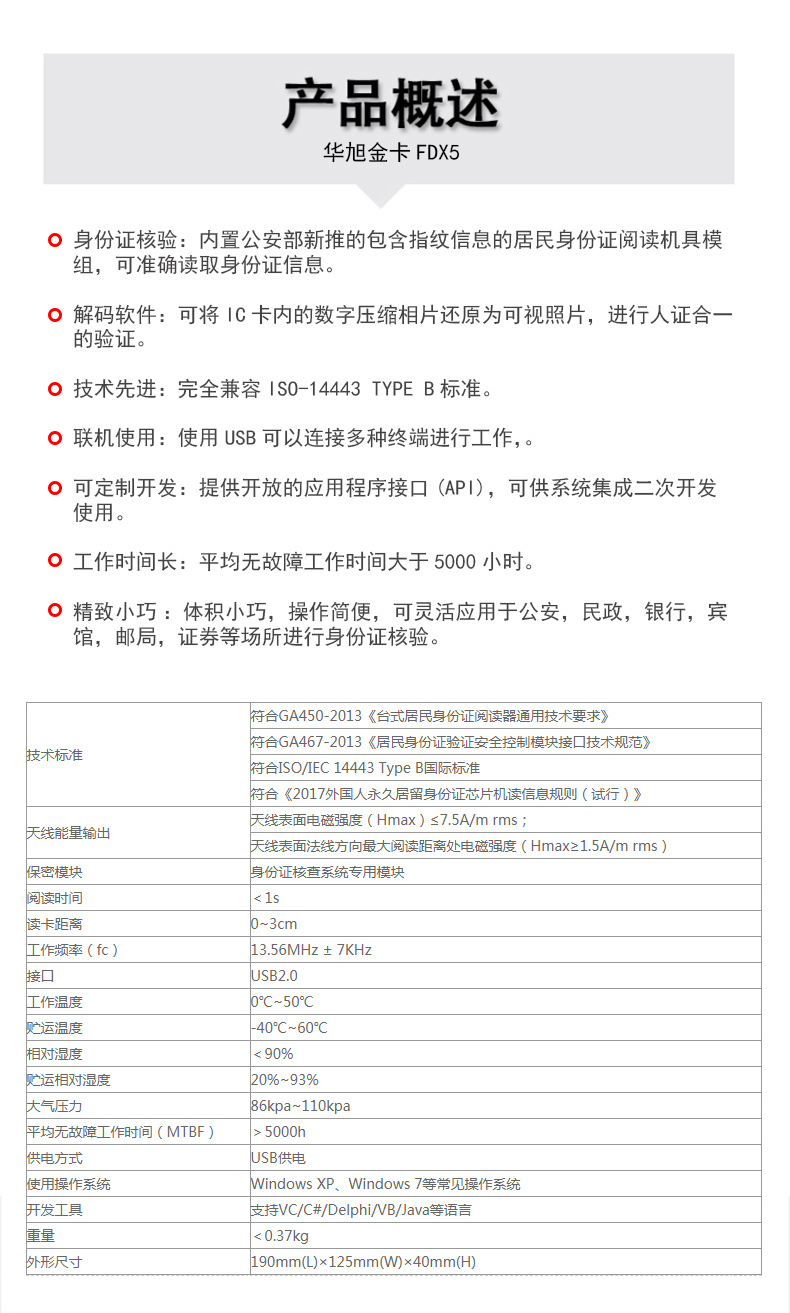 (*由于產(chǎn)品升級(jí)或其他原因,華旭身份證閱讀器產(chǎn)品實(shí)際參數(shù)有可能變更,以實(shí)際產(chǎn)品為準(zhǔn)。本文中的所有陳述、信息和建議也不構(gòu)成任何明示或暗示的擔(dān)保)