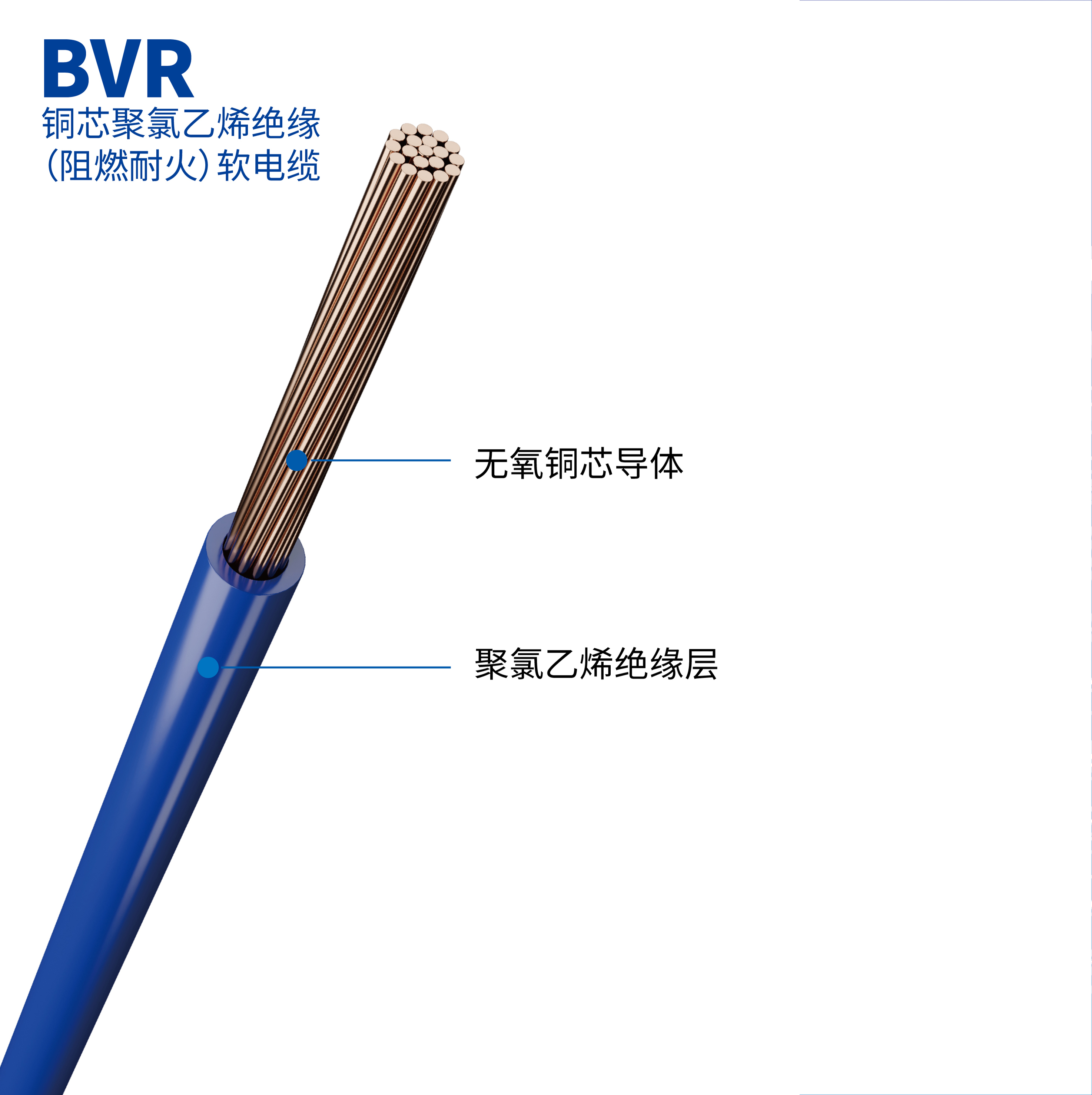 字母含義:B:固定敷設(shè)用電線電纜;V:聚氯乙烯絕緣;R:軟結(jié)構(gòu)