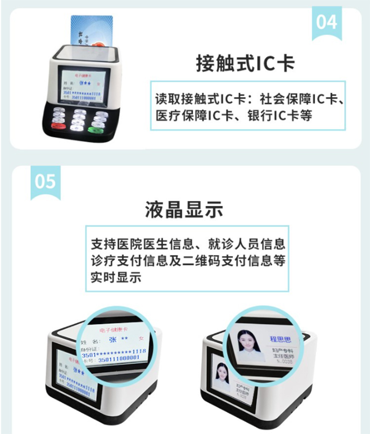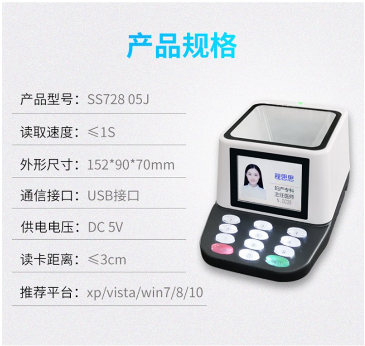 神思SS728-M05J多合一讀卡終端可以讀取身份證信息,社??ㄐ畔?,醫(yī)??ㄐ畔ⅲ琲c卡信息,就診卡