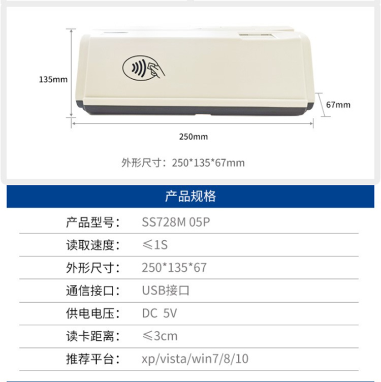 (*由于產(chǎn)品升級或其他原因,神思醫(yī)??ㄗx卡器SS728-M05P產(chǎn)品實際參數(shù)有可能變更,以實際產(chǎn)品為準(zhǔn)。本文中的所有陳述、信息和建議也不構(gòu)成任何明示或暗示的擔(dān)保)